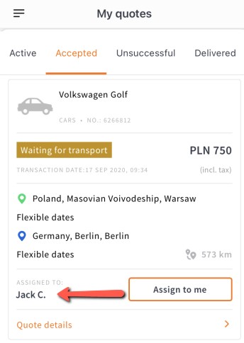 Lorsque vous parcourez les offres acceptées sur l'appli, vous pourrez voir à qui est attribuée une livraison spécifique :